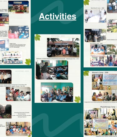 Distribution of medical aids ,school necessaries for rural government schools, free medical camps